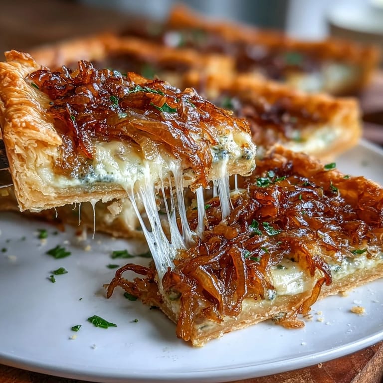 Save There's something almost meditative about watching onions transform in a hot pan—the way they start out sharp and crunchy, then slowly surrender to heat until they're jammy and sweet. I discovered this tart on a gray Sunday afternoon when I had a fridge full of onions and the vague sense that something elegant should happen with them. The buttery puff pastry, those pools of creamy custard, and the nutty Gruyere all coming together felt like I'd accidentally uncovered a secret that French cooks have been protecting for centuries.