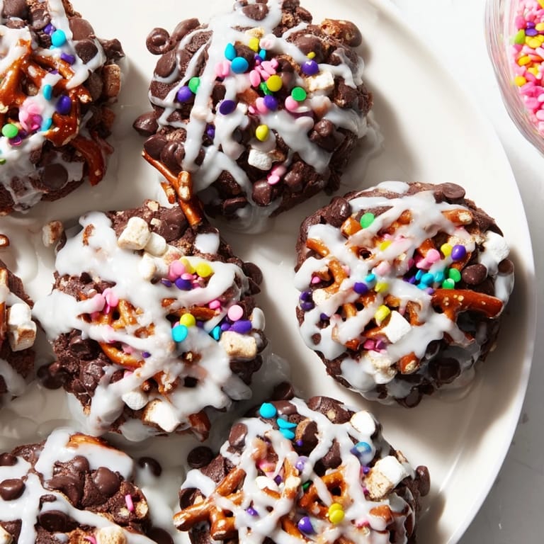 - Fold in chocolate chips, sprinkles, chopped pretzels, and marshmallows.