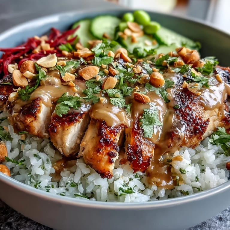 I made this for my sister's surprise visit last summer, and she sat at my kitchen counter eating directly from the pot of extra peanut sauce with a spoon while we caught up. That moment—the smell of grilling chicken mixing with toasted sesame, her laughter, the lime wedges scattered across the cutting board—that's when I knew this bowl had become more than just dinner.