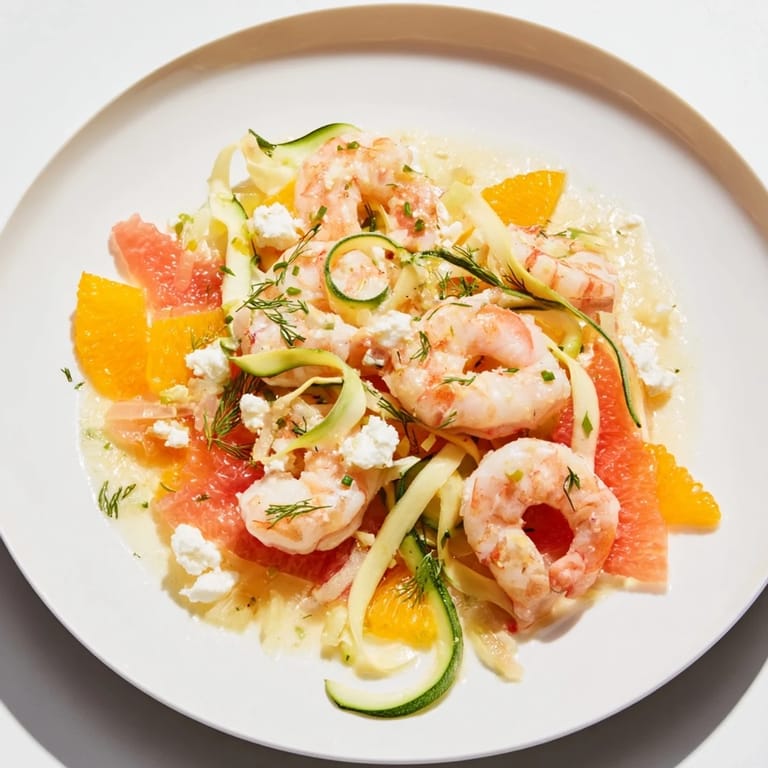 The real magic of this dish is in the arrangement, not the cooking. You could follow these steps perfectly and still end up with something that tastes wonderful but looks ordinary if you don't take a moment with the platter. Think of it like you're arranging a small landscape—let the colors speak to each other, create little valleys where things nestle together, leave some height variation so it catches light differently from different angles. The vegetables form the geological structure, the shrimp become the creatures, and the citrus segments are the light filtering through water. It sounds fanciful, but people eat with their eyes first.