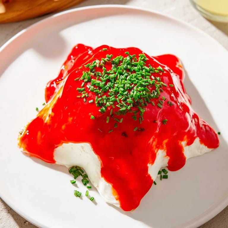 Pair with assorted crackers or baguette slices to complement the creamy texture and spicy-sweet topping, offering a perfect bite-sized snack.