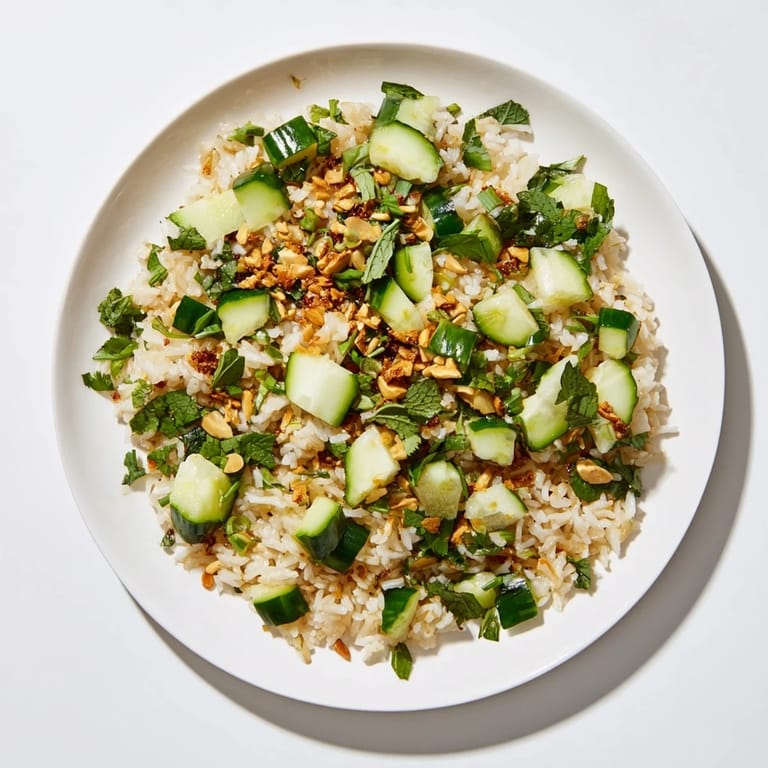 Save A bright, refreshing salad featuring crunchy cucumbers, fluffy rice, and a zesty sesame-soy dressing. Perfect as a quick side or a light lunch.