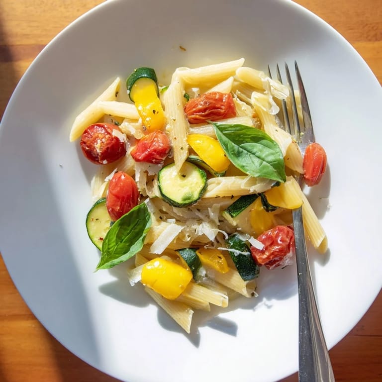 Save My neighbor knocked on the door one August morning holding a canvas bag bulging with squash and zucchini. Her garden had exploded overnight, and she looked equal parts proud and panicked. I promised to put them to good use, and by that evening, this pasta was born out of necessity and a fridge full of tomatoes that were two days from going soft. It turned into one of those accidental recipes that feels less like cooking and more like summer on a plate.