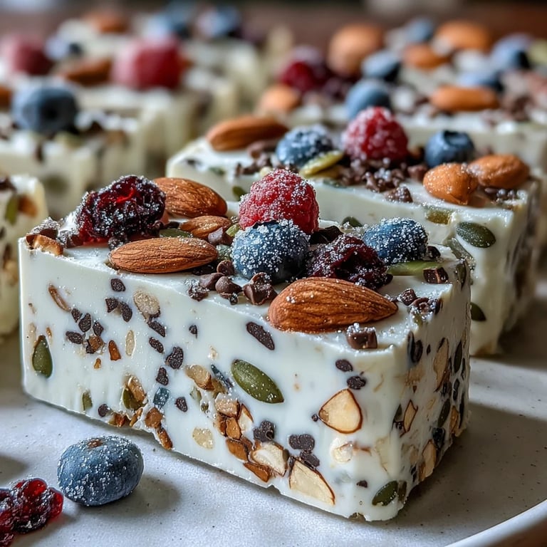 Save Last summer, I was standing in my kitchen at 6 AM, mentally exhausted from the usual breakfast scramble, when I decided to stop fighting the clock and work with it instead. That's when this yogurt bark came to life—a frozen treat that tastes like you spent hours on it but actually takes minutes. Now it sits in my freezer like a secret weapon, waiting for those mornings when I need something that feels indulgent but actually fuels me properly.
