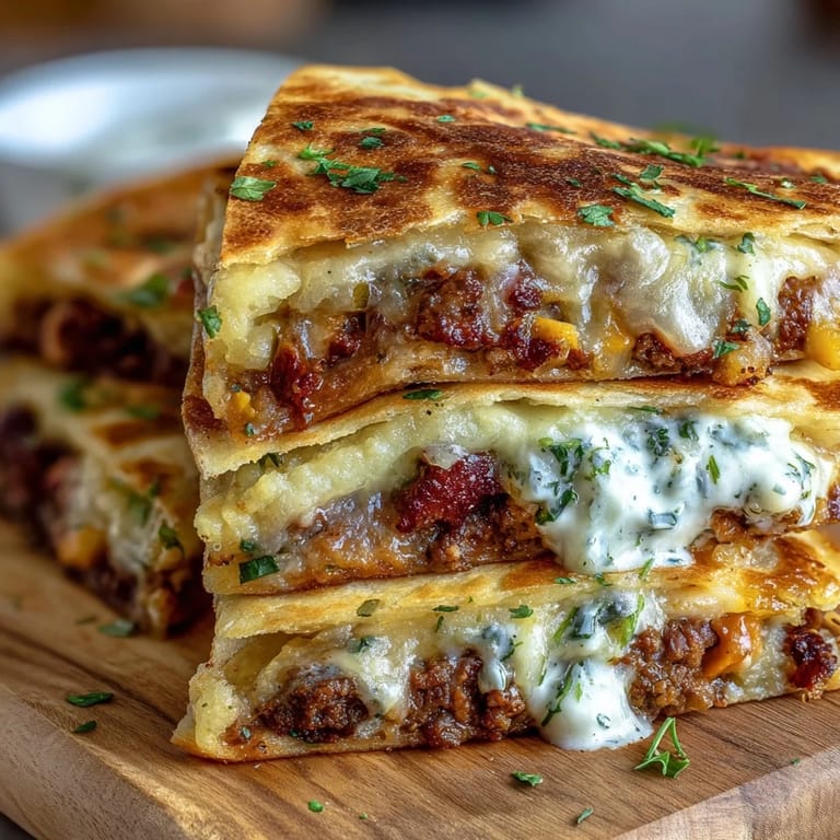 Save My friend Sarah showed up at my door one rainy Wednesday with this wild idea: what if we turned shepherd's pie into a quesadilla? I laughed at first, but then we started cooking together in my cramped kitchen, and somehow the flavors just worked. The buttery tortilla shell gave way to creamy potatoes, savory meat, and melted cheese—it felt like biting into comfort food that couldn't decide which cuisine it belonged to, and honestly, that's exactly why it worked.