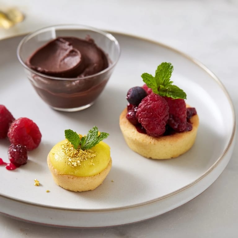Save Experience the elegance of a French patisserie right at your table with the Assiette de Desserts Starry Delight. This sophisticated dessert platter showcases a harmonious medley of miniature sweets—rich chocolate mousse, zesty lemon tartlets, and delicate raspberry financiers—each bringing its own unique texture and flavor. Perfect for impressing guests or celebrating special moments, this sparkling array of desserts promises a journey of refined tastes and visual appeal.