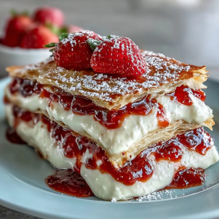 Save My sister called me in a panic two days before her Mother's Day brunch, asking if I could bring something impressive. I found myself staring at a farmers market crate of perfect strawberries at dawn, and suddenly this crepe cake felt inevitable—delicate enough to feel like a gift, stunning enough to steal the show. The magic is in its simplicity: paper-thin crepes layered with cloud-soft vanilla cream and fresh fruit, assembled just hours before guests arrive. When I carried it to her table and watched everyone's faces light up, I understood why the French have been making this for centuries.