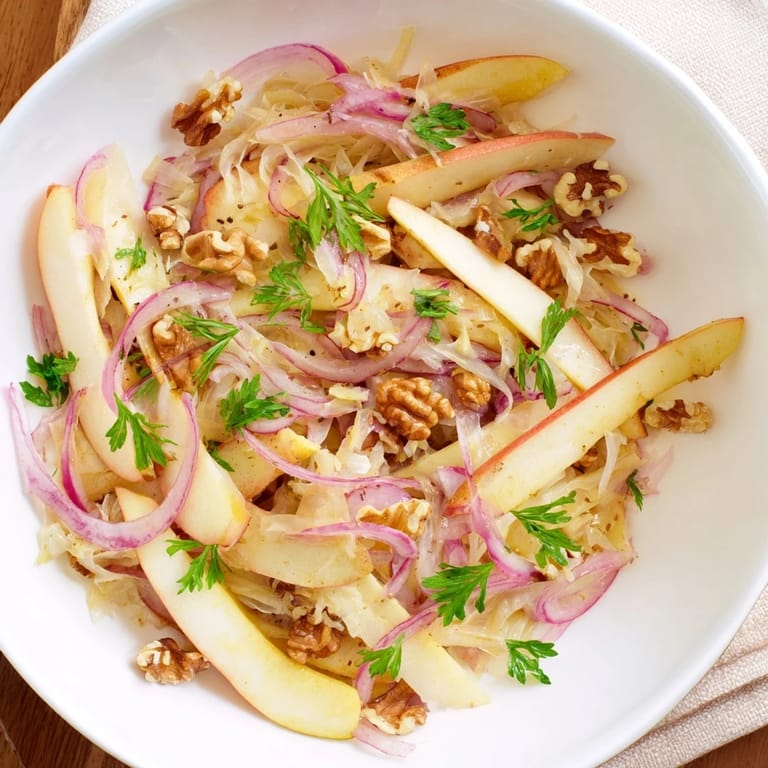 Save The first time my German grandmother made this, I wrinkled my nose at the combination. Something about warm sauerkraut and sweet apples seemed wrong until that first bite hit my tongue. The tangy fermented kraut had met its perfect match in caramelized fruit, and I've been obsessed ever since.