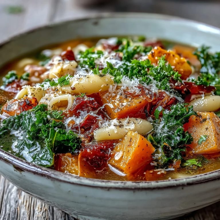 Save My neighbor knocked on my door one January afternoon with snow piling up outside, carrying a container of minestrone her grandmother used to make. She ladled it into a bowl while I watched the steam rise, and something about that simple gesture—someone sharing warmth in the middle of winter—made me want to recreate it. That first spoonful was pure comfort, loaded with tender squash and kale, nothing fancy or pretentious, just honest vegetables doing what they do best. I've been making it ever since, tweaking it slightly each time, but always coming back to that same generous, nourishing spirit.